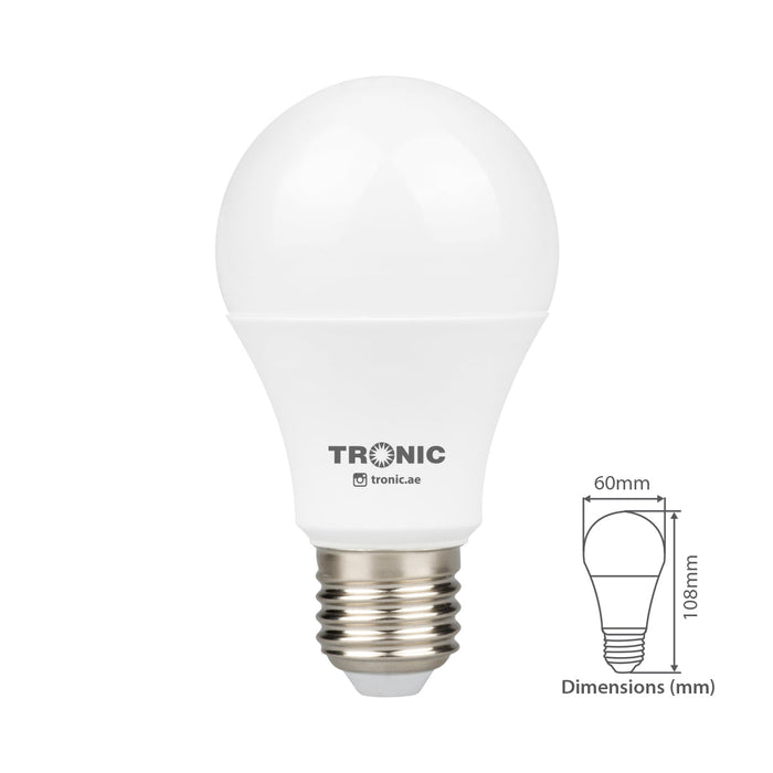 Tronic LED bulbs provide Clean, efficient and affordable lighting for all your domestic and commercial needs. LED bulbs were designed as a more energy-efficient light source. This model provides 90 Lumens per watt and a total of 630 lumens for this model.
