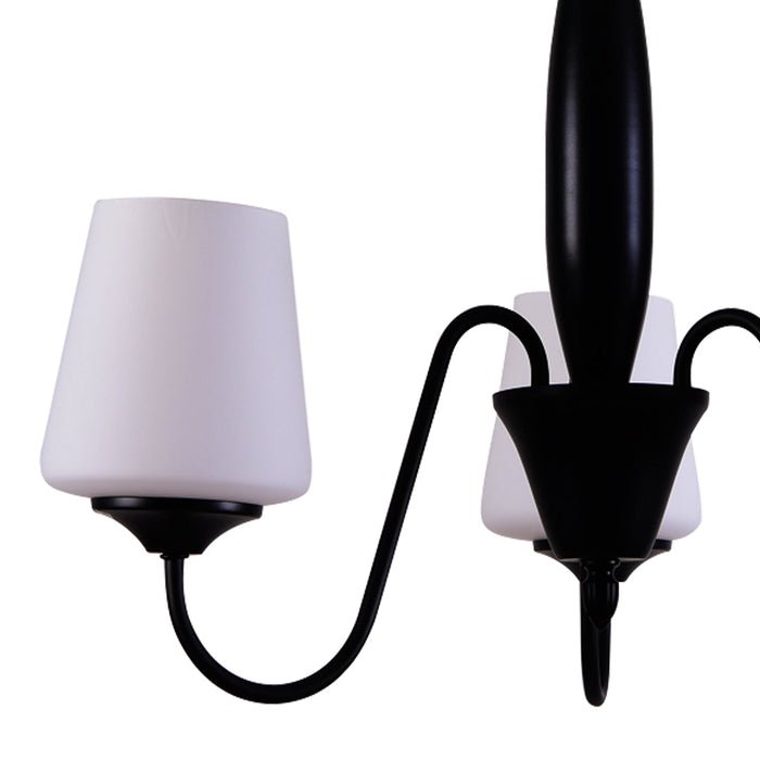 This stunning pendant encompasses a majestic beauty. It instantly fills up any large room or setting. The opulent white frosted glass cones add quality illumination to your space. It comes in a large 6 arms you can go with a smaller 3 arms.