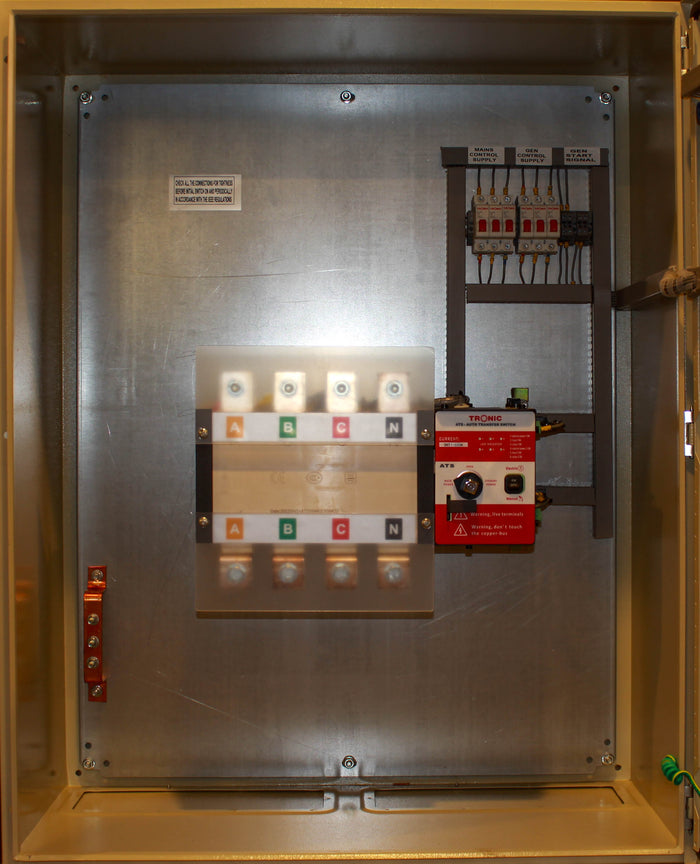 TRONIC Automatic Transfer Switch (ATS) controller uses microprocessor as its core which can precisely monitor voltage (loss of main power). The ATS will start functioning in the following circumstances; loss of power, over voltage, under voltage phase.