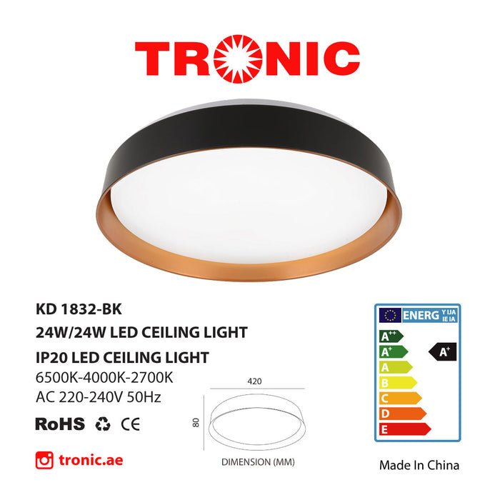 Shop online with ease and save big on high quality and cheap Black and Copper LED Colour Changeable (3 Shades) Ceiling Light and Discover the ease of online shopping in Tanzania with Tausify where you can find premium Electrical products at incredibly low prices. Experience a wide selection of Tronic products. Plus, enjoy the convenience of free delivery on numerous products in Dar es Salaam. Take advantage of the smart online shopping experience and substantial savings only with Tausify Karibu.