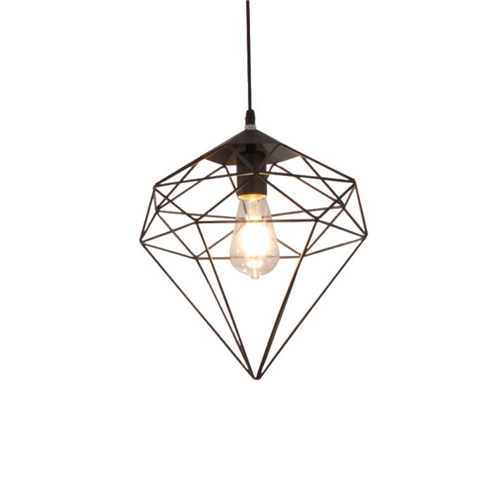 Diamond cage shaped pendant lamp, a combination of contemporary style and industrial feel. Excellent for accent lighting.