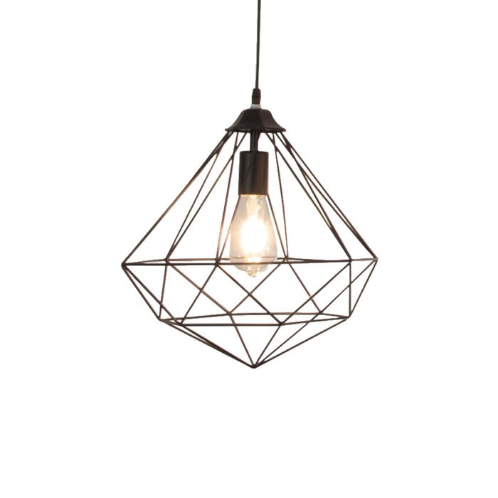 Diamond cage shaped pendant lamp, a combination of contemporary style and industrial feel. Excellent for accent lighting.