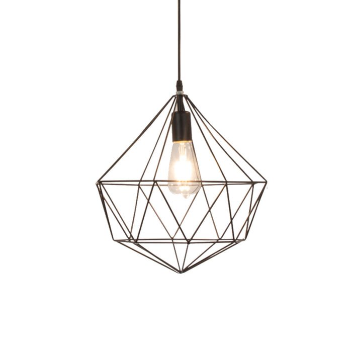 Diamond cage shaped pendant lamp, a combination of contemporary style and industrial feel. Excellent for accent lighting.