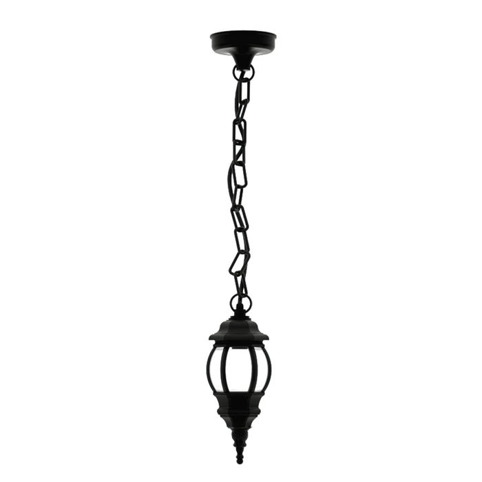 Black outdoor hanging lantern with clear glass makes this light durable, reliable and waterproof combination you need in your security lights for long-lasting reliable usage.