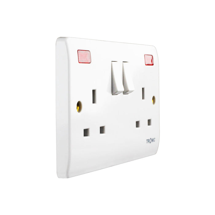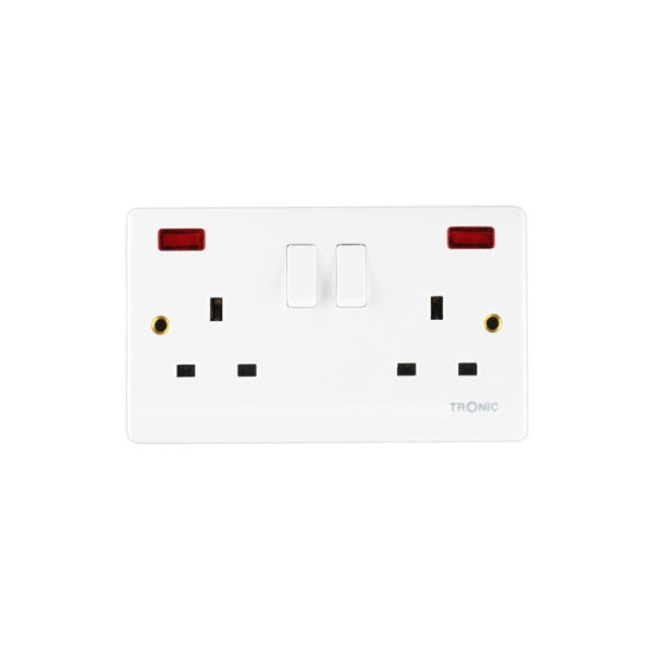 This standard range Tronic Double Socket in white , has smooth edges, has a neon indicator and has a shiny surface to fit into the modern style of ones home or office. I. This double socket is rated 13A however can hold a total load of 20A when in use together.