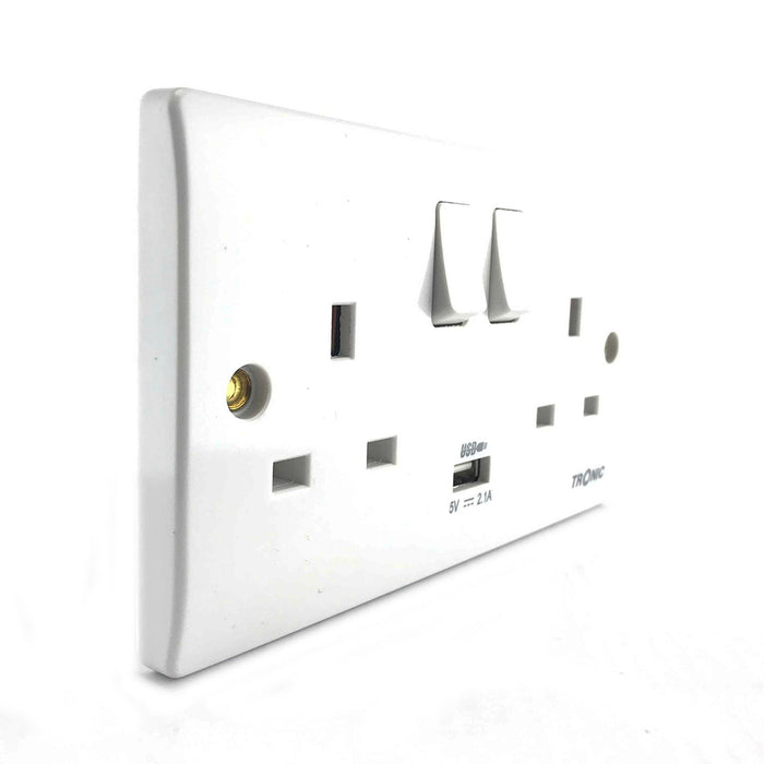 Tronic Twin Switch Socket with USB