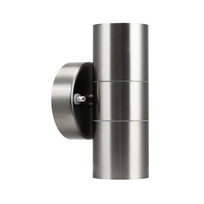 A fantastic cylindrical wall light is available in a sophisticated silver finish, perfect for use outdoors. Suitable for both indoor and outdoor uses. Ideal to highlight the exterior of your property and placed either side of an entrance.