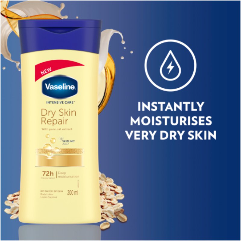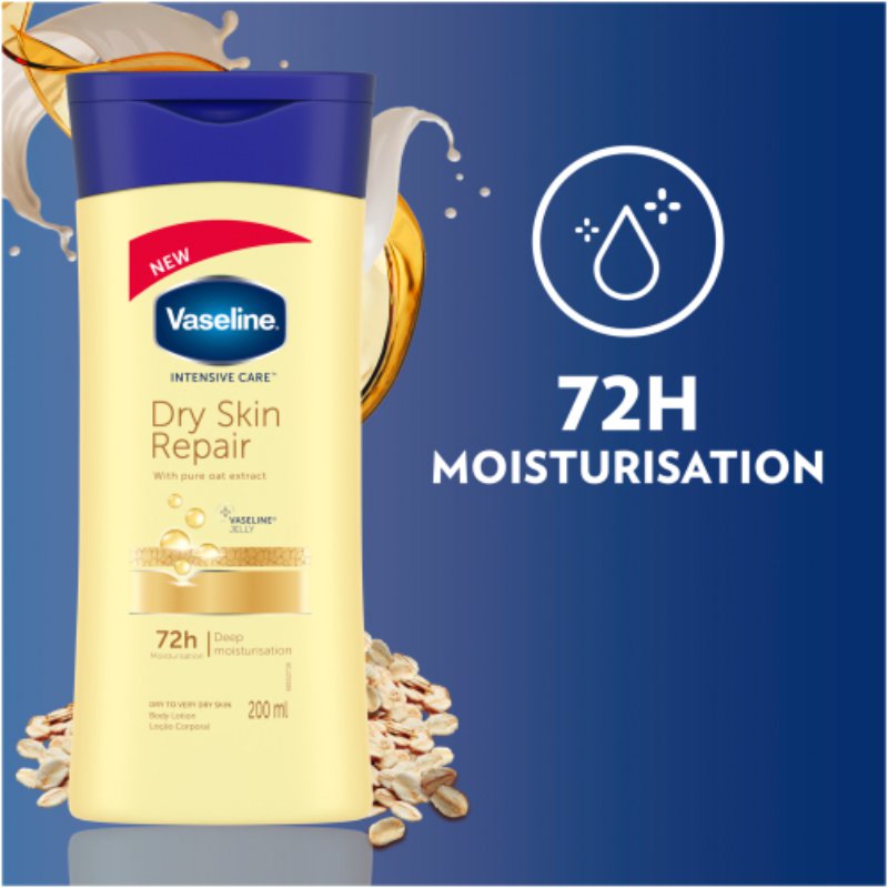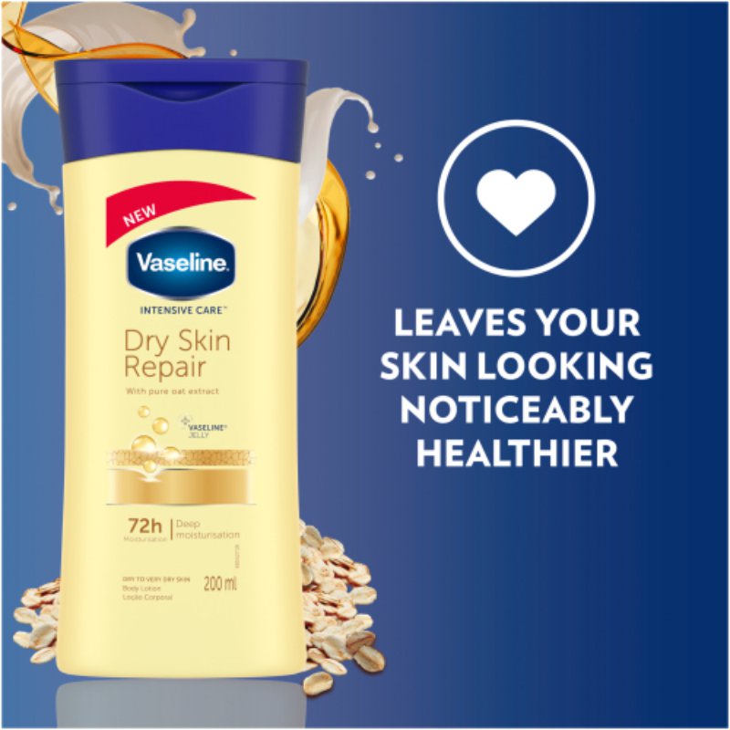 Vaseline Body Lotion Intensive Care Dry Skin Repair 200ml Pure Oat Extract, 72hr Moisturisation, Lock in Moisture 67315956 (Pack of 3)