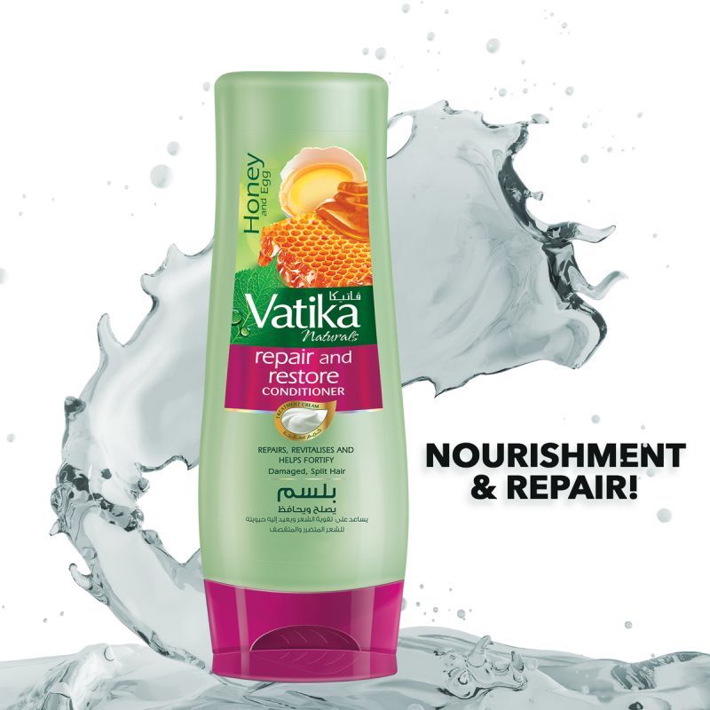 Do Split-ends and Damaged hair bother you? The Vatika Naturals Repair & Restore Conditioner with the goodness of natural ingredients namely Egg and Honey is the perfect solution for Damaged hair. The hair repair conditioner is enriched with Vatika Oils and it’s an herbal recipe, the product intensely nourishes your hair from the root to tip and replenishes moisture. For best results, use the conditioner after gently rinsing your hair with the Vatika Naturals Repair and Restore Shampoo enriched with the goodness of honey and egg!