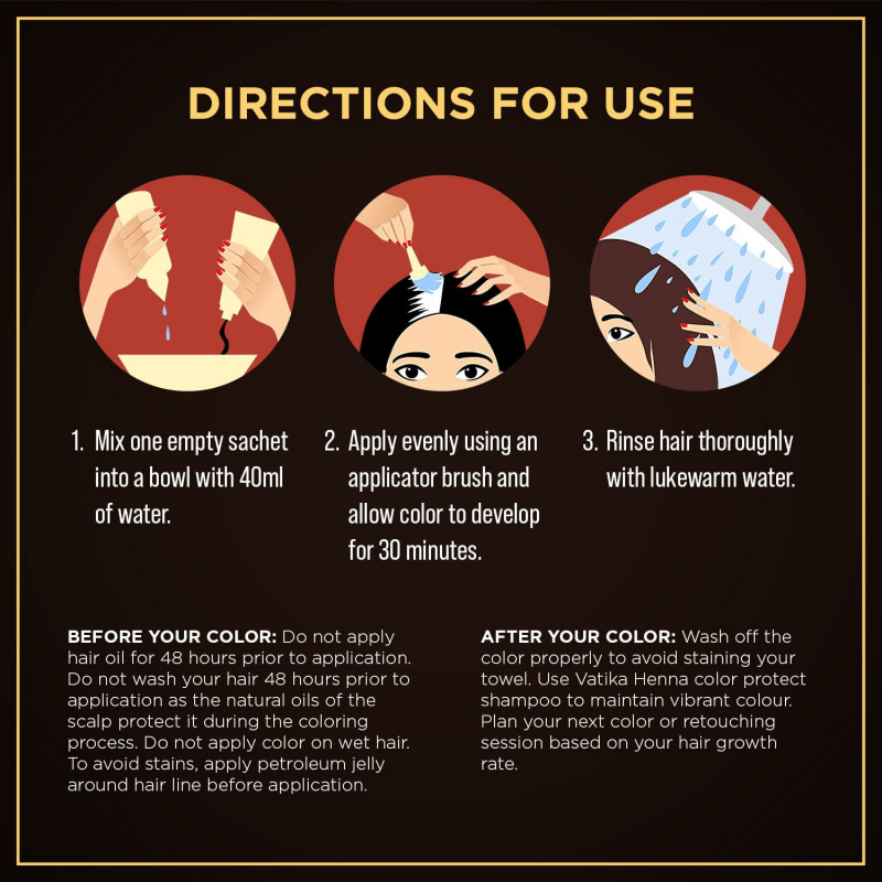 Vatika Henna Hair Color Henna Hair Dye, Henna Hair Color and Conditioner, Zero Ammonia Henna for Strong and Shiny Hair, 100% Grey Coverage, Dark Brown 6 Sachets – Set of 3 Pcs