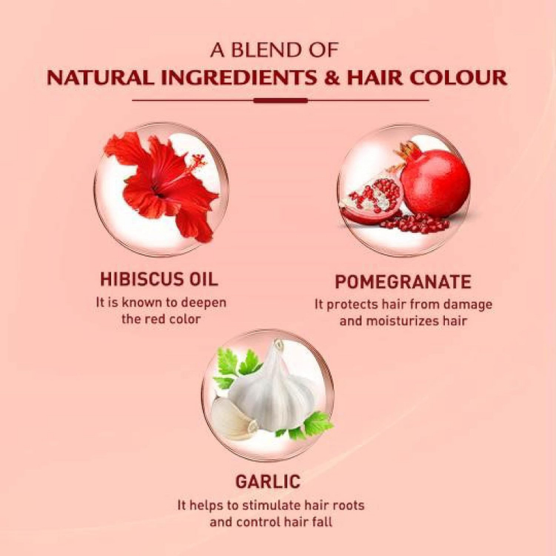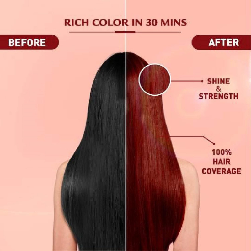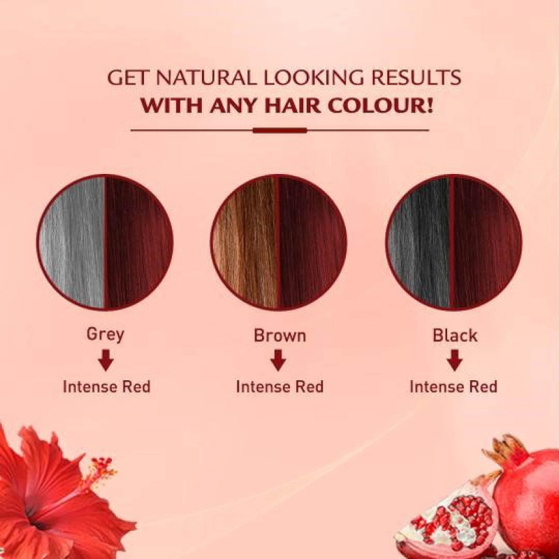 The herbal hair colour gives your grey hair a 100% intense red look with added shine and strength. Enriched with Hibiscus oil, this no ammonia hair colour, infused with natural oils, nourishes your hair from root to tip and gives it a glossy finish. This natural hair colour for women improves root strength and gives your hair a rich colour in 30 minutes.