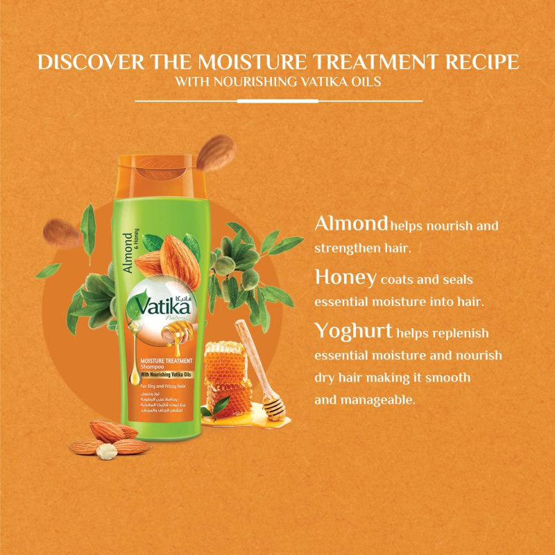 Vatika Shampoo Moisture Treatment Natural & Herbal, Enriched with Almond & Honey, for Dry & Frizzy Hair 200ml